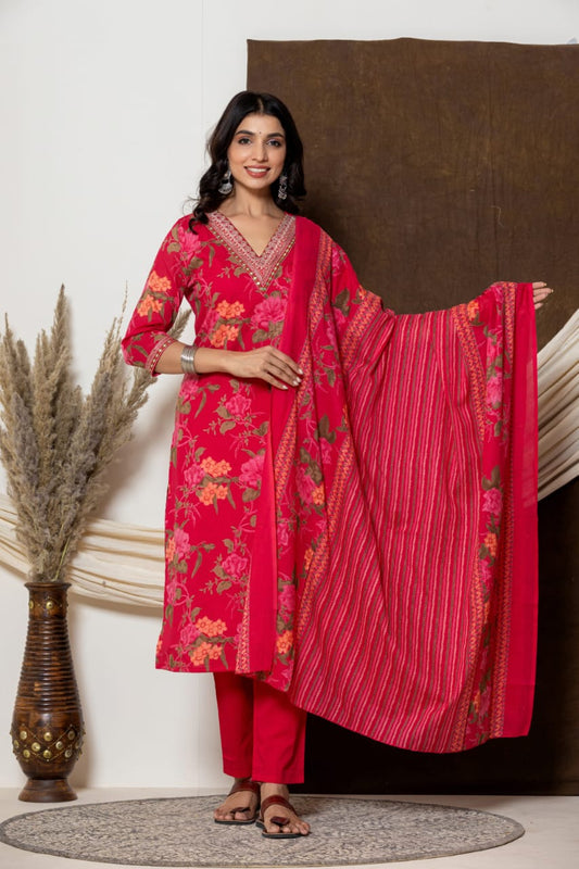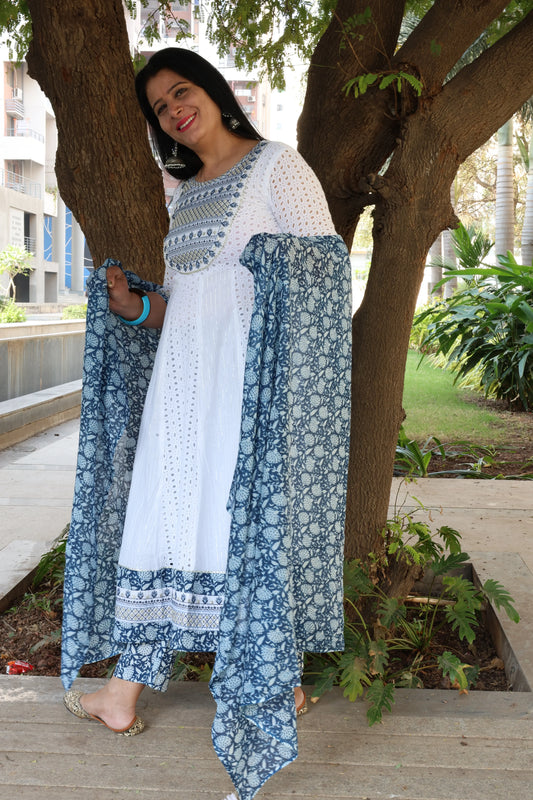 Premium Cotton Anarkali Suit – Hakuba Cum Schiffli Embroidery