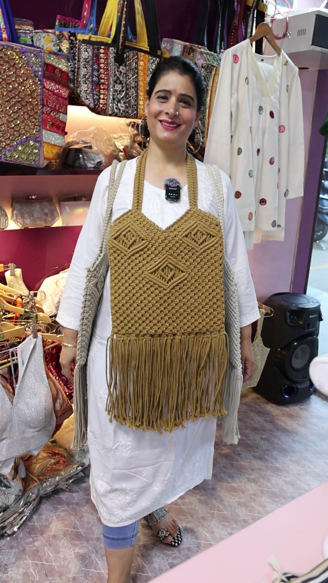 Macrame Boho Shoulder Bag Cotton Cord Weaving Bag