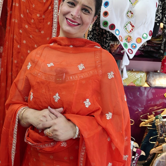 Premium Banarasi Silk Fabric Suit with Glass Tissue Dupatta. Gota Patti Embroidery Hand Work Design