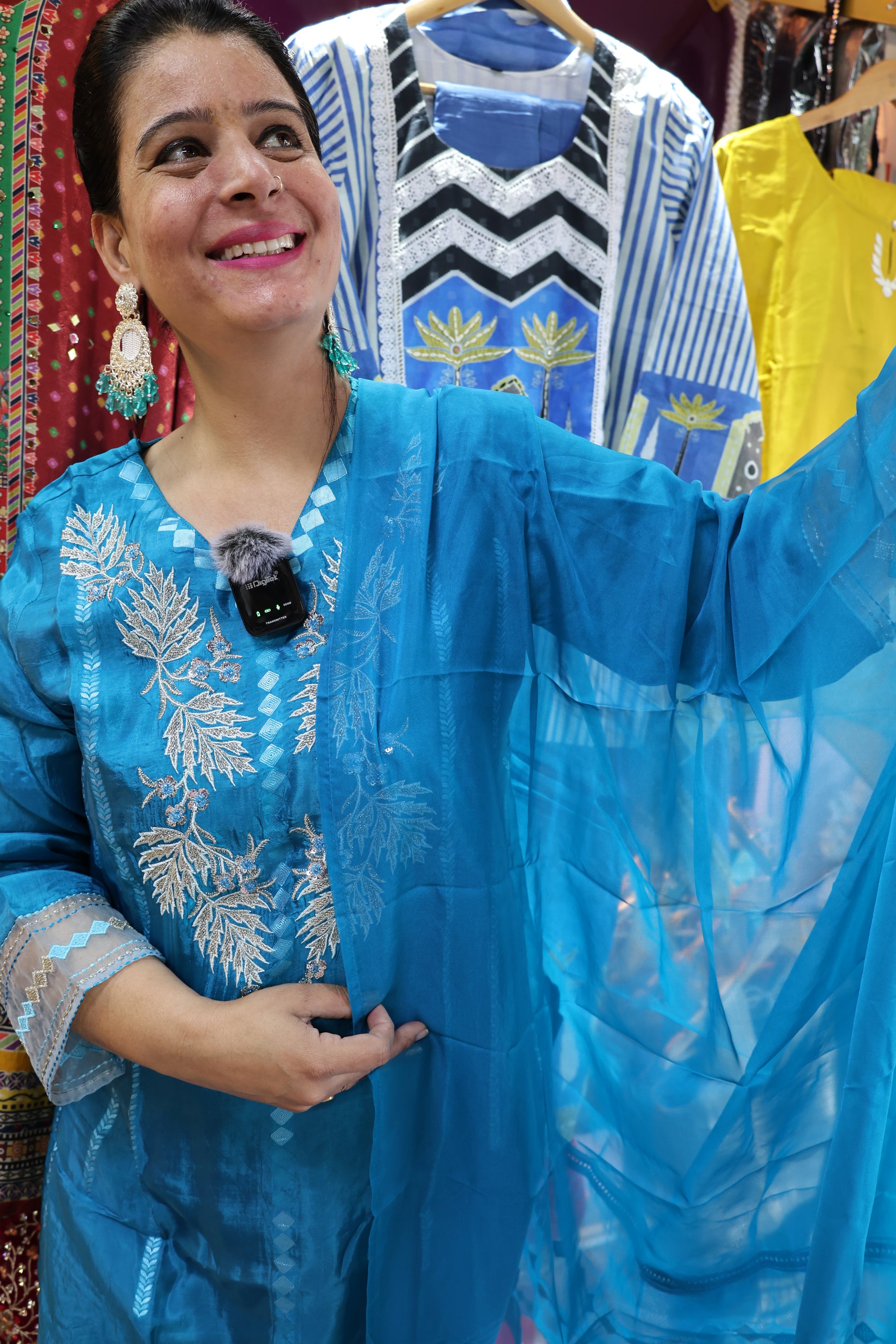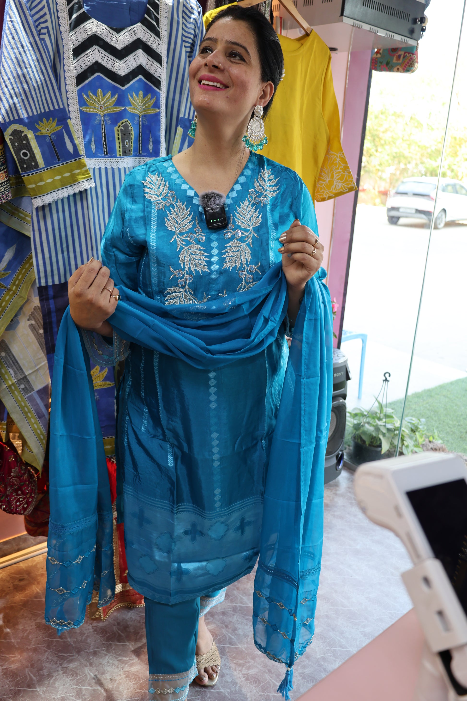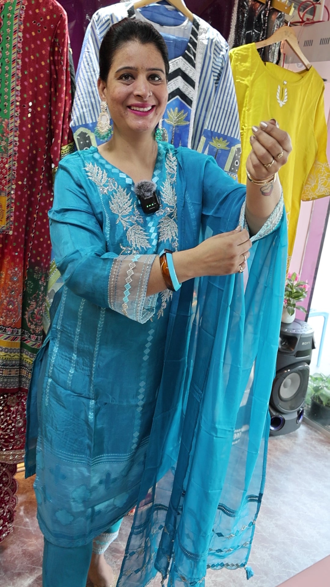 Premium Dola Silk Suit Set | Organza Tissue Work & Embroidery | Tassel Dupatta