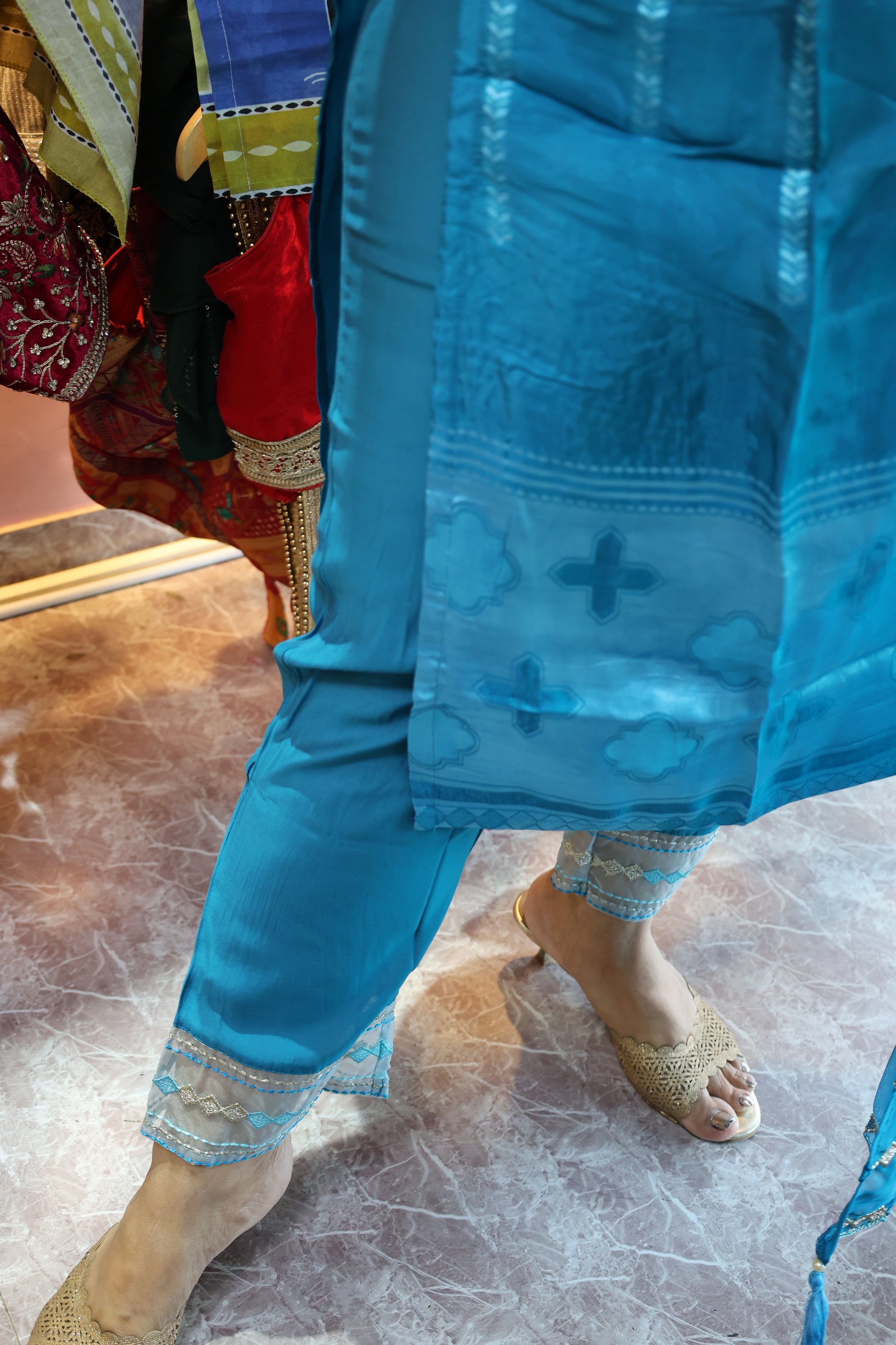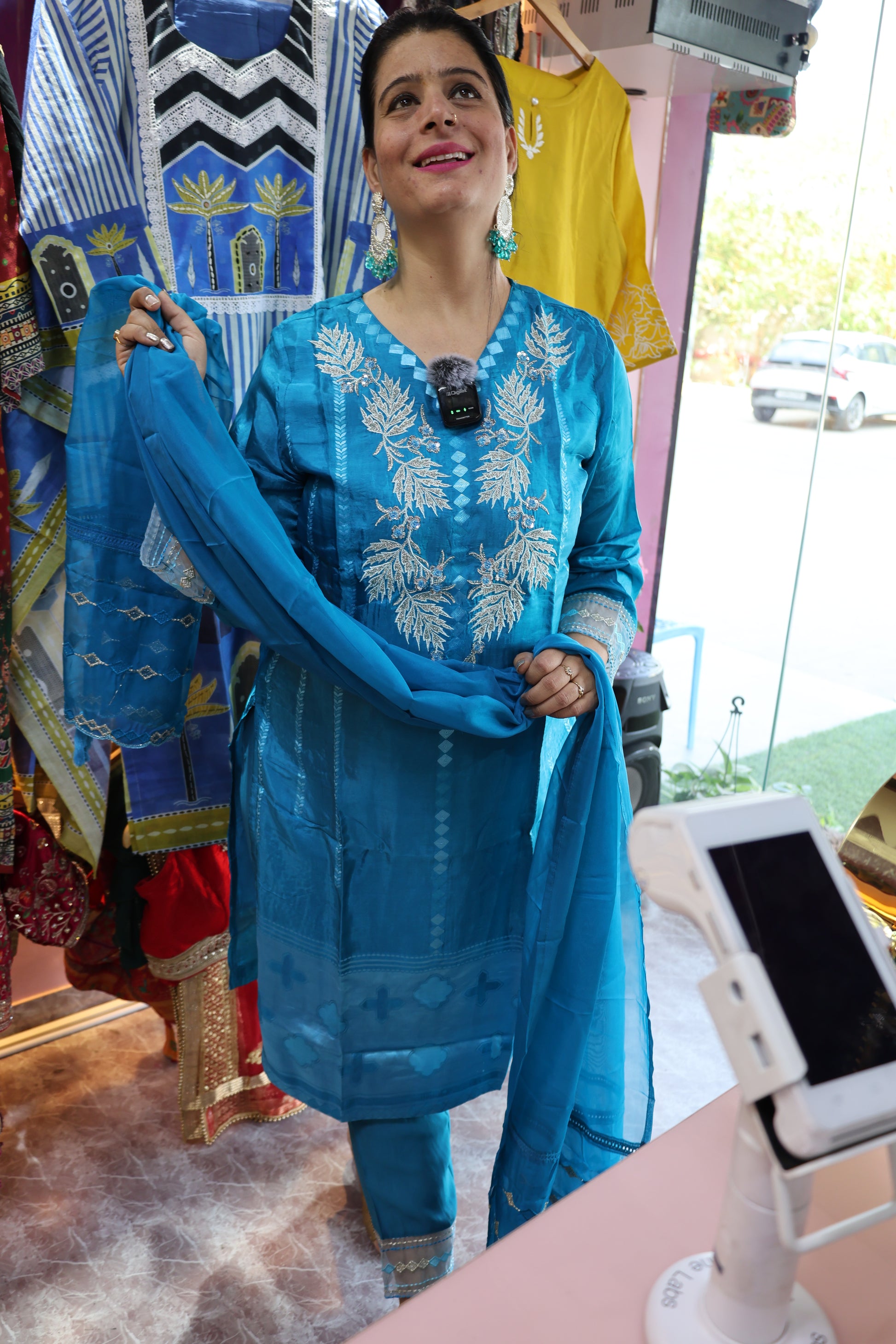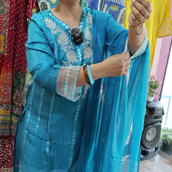 Premium Dola Silk Suit Set | Organza Tissue Work & Embroidery | Tassel Dupatta