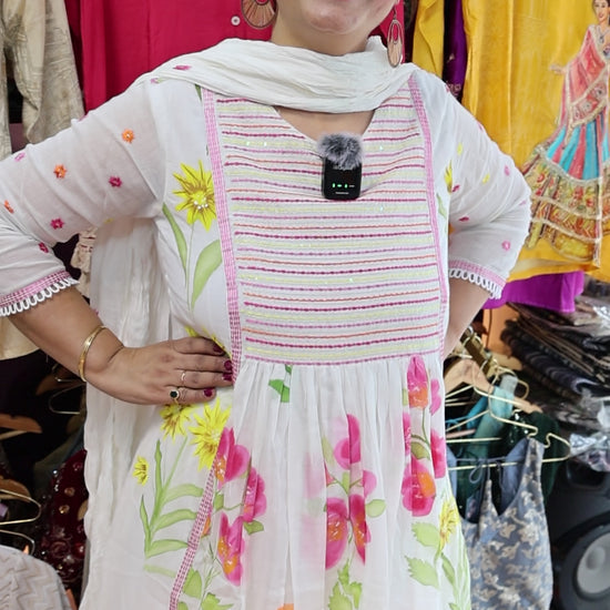 Pure Mul-Mul Cotton Fabric Suit Set, A Line Pattern along with Block Print and Hand Brush MultiThread Work
